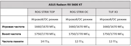 Все перипетии с Radeon RX 5600 XT начались с того, что AMD в последний момент перед выходом видеокарты выпустила для неё новую версию vBIOS, которая позволяет значительно увеличить тактовые частоты GPU и памяти. Однако вместо того, чтобы соответствующим образом обновить уже представленные модели, ASUS новым увеличила у них лишь частоты GPU, в дополнение к чему выпустила отдельную модель ROG Strix Radeon RX 5600 XT Top с более скоростной памятью.