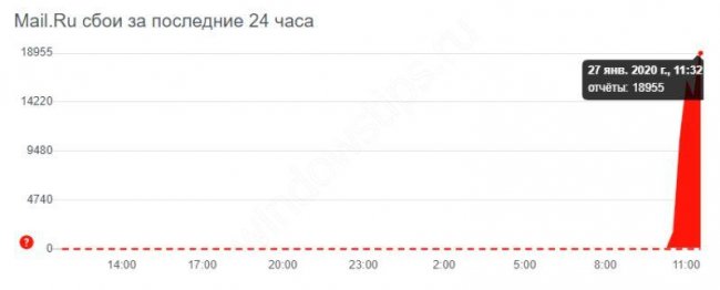 27 января 2020 года многочисленные пользователи Mail ru столкнулись с ошибкой учетной записи. Причем речь идет о глобальном сбое на сервере компании. Ведь только на 11.30 количество жалоб достигло 18955 в минуту (прежде всего в центральной России).