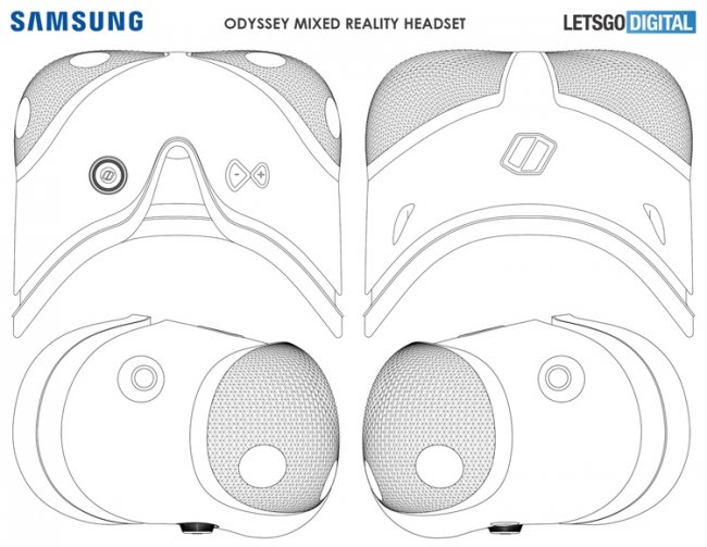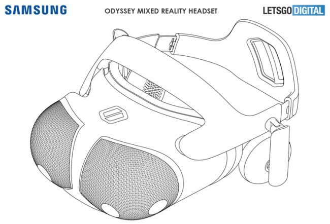 Новинка позволит погружаться в виртуальную реальность. Как можно видеть на иллюстрациях, гаджет получит довольно массивный фронтальный блок с системой визуализации. По всей видимости, будут применены два дисплея AMOLED — как у модели Odyssey+, вышедшей ещё в 2018 году.