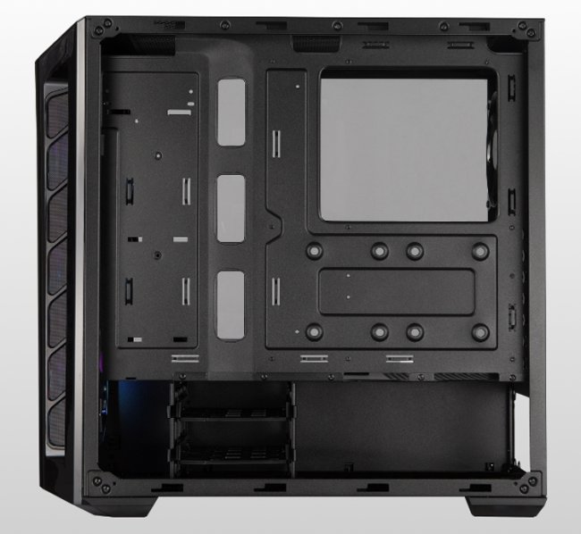 Корпус изначально оборудован четырьмя вентиляторами диаметром 120 мм. Три из них располагаются во фронтальной части: эти кулеры наделены многоцветной ARGB-подсветкой. Ещё один вентилятор установлен сзади — он не имеет подсветки.