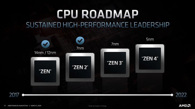 В рамках Financial Analyst Day 2020 компания AMD представила последние обновления своих планов по выпуску новых ЦП и ГП. В предыдущих графиках аналогичного характера AMD использовала термин «7 нм+» при упоминании продуктов после первых 7-нм решений. Сегодня AMD пояснила: это не означает, что используются нормы TSMC N7+ для этих решений.