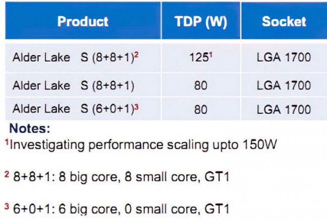 Также отметим, что процессоры Core двенадцатого поколения могут стать первыми массовыми настольными процессорами Intel с поддержкой интерфейса PCIe 4.0. А вот будут ли они поддерживать память DDR5, пока неизвестно. Уровень TDP старших процессоров Alder Lake-S составит 125 Вт, однако также Intel сейчас исследует возможность повышения его до 150 Вт. У моделей попроще уровень TDP будет равен 80 Вт. При этом ожидается, что процессоры Alder Lake-S будут производиться по 10-нм техпроцессу. Кстати, странно что в таблице упоминаются только 8+8-ядерные и 6-ядерные модели процессоров: объяснения этому у нас пока нет.