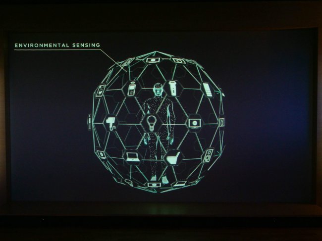 Внешне решение выглядит довольно незатейливо: серый коврик, расстеленный перед тёмной стеной, в которую вмонтированы камеры и датчики. На неё же проецируются показатели человека и трёхмерный образ его виртуального тренера. Чтобы приступить к занятиям, нужно удобнее встать на коврик и несколько секунд спокойно постоять, чтобы система определила и выдала данные пользователя и базовый настрой.