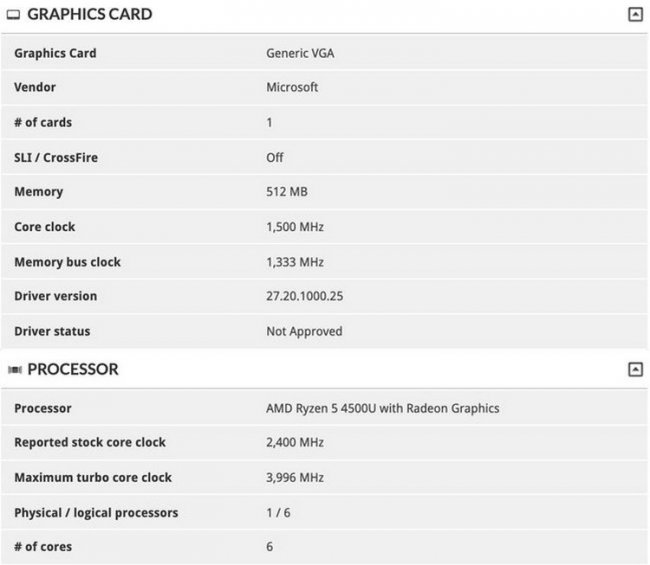 Известный источник утечек с псевдонимом _rogame обнаружил в базе данных бенчмарка 3DMark упоминания компьютера Microsoft на процессоре AMD Ryzen 5 4500U. О том, что это устройство Microsoft, свидетельствует упоминание компании в описании видеокарты в качестве её вендора.