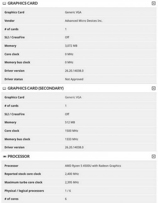 Кроме того, источник обнаружил в той же базе данных упоминание некоего ноутбука с процессором Ryzen 5 4500U и видеокартой Radeon RX 5300M, якобы от самой AMD. Как у дискретной, так и у встроенной графики здесь в качестве вендора указана сама Advanced Micro Devices. Вероятно, это некая тестовая система, возможно, используемая для разработки Surface Book 3.