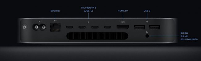 Текущая версия Mac mini была впервые выпущена ещё в ноябре 2018 года и предлагала в базовой конфигурации 128-Гбайт накопитель. Если нужно больше места, всегда можно доплатить и получить SSD ёмкостью до 2 Тбайт за дополнительные $800 долларов. Mac mini включает неплохой набор портов (четыре USB-C Thunderbolt 3, два USB 3.0, HDMI 2.0, разъёмы для наушников и Ethernet).