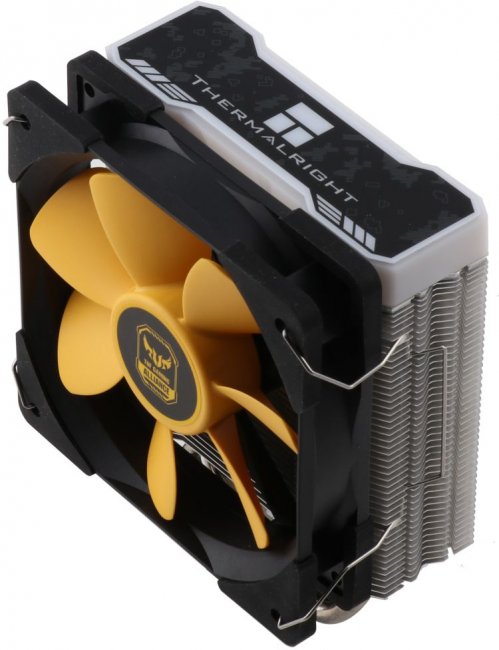 Эту неделю компания Thermalright завершила дебютом процессорного охладителя TUF Black Eagle, который был создан в сотрудничестве с Asustek Computer. Последняя будет рекомендовать его для использования в игровых системах на базе собственных материнских плат. Модная подсветка прилагается к радиатору. Информация сайта - «scanpin.ru» Вопреки современным тенденциям, сам вентилятор подсветки лишён, у него семь непрозрачных лопастей песочно-горчичного цвета с логотипом TUF Gaming Alliance на роторе. Вентилятор модели TY-128 BP имеет стандартный типоразмер 120 ? 120 ? 25 мм и массу не более 140 г, к материнской плате он подключается при помощи четырёхконтактного разъёма питания. Информация сайта - «scanpin.ru» Скорость вращения вентилятора изменяется по методу широтно-импульсной модуляции в диапазоне от 600 до 1500 об/мин, уровень шума варьируется от 19 до 23 дБА. За одну минуту вентилятор способен прокачать от 21,76 до 62,25 кубических футов воздуха. В роторе установлен гидродинамический подшипник. Информация сайта - «scanpin.ru» Сам радиатор имеет скромную глубину — не более 42 мм без учёта вентилятора, его ширина не превышает 120 мм, а высота — 158 мм. От медного основания с никелевым покрытием отходят пять тепловых трубок U-образной формы стандартного диаметра 6 мм. При взгляде на радиатор со стороны вентилятора заметно, что стволы тепловых трубок разнесены таким образом, что две крайние пронизывают радиатор ближе к внешнему краю, две ближайшие к центральной трубке пронизывают радиатор ближе к его центру, а средняя тепловая трубка располагается где-то между ними. Информация сайта - «scanpin.ru» Для улучшения обдува в пластинах радиатора предусмотрена дополнительная перфорация, образующая воображаемые вертикальные каналы, если рассматривать положение радиатора с опорой на горизонтальную поверхность. Радиатор состоит из 45 пластин толщиной 0,4 мм, разделяемых зазором в 2 мм. Он увенчан пластиковой накладкой, которая оснащена собственной RGB-подсветкой с отдельным трёхконтактным разъёмом питания. Как можно догадаться, управление подсветкой радиатора материнская плата ASUS берёт на себя. Масса радиатора без учёта вентилятора не превышает 470 г. Производитель утверждает, что конструкция позволяет справляться с отводом до 200 Вт тепловой мощности. Стоимость новинки не уточняется, но она наверняка скоро станет известна.