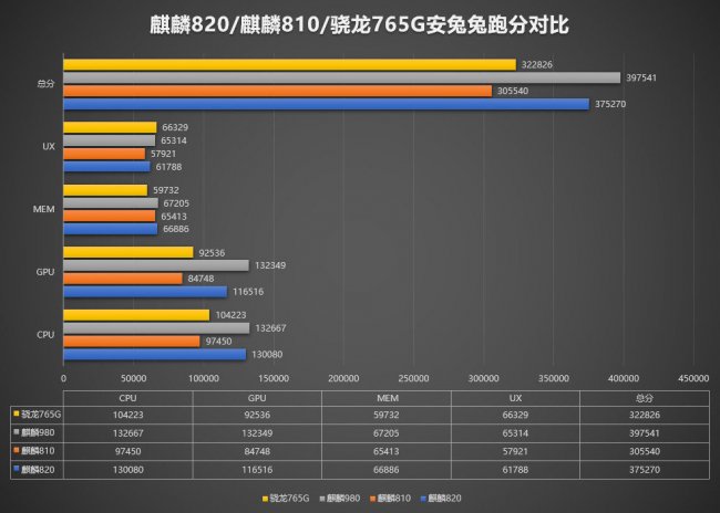 Kirin 820 имеет очевидные преимущества с точки зрения производительности ЦП и ГП по сравнению с Kirin 810 или Snapdragon 765G, и результаты это доказывают. Если сравнивать новый чип с прежним флагманом Huawei Kirin 980, то Kirin 820 выдаёт почти тот же результат в области ЦП, но всё ещё отстаёт по мощности ГП, хотя общий результат очень близок.