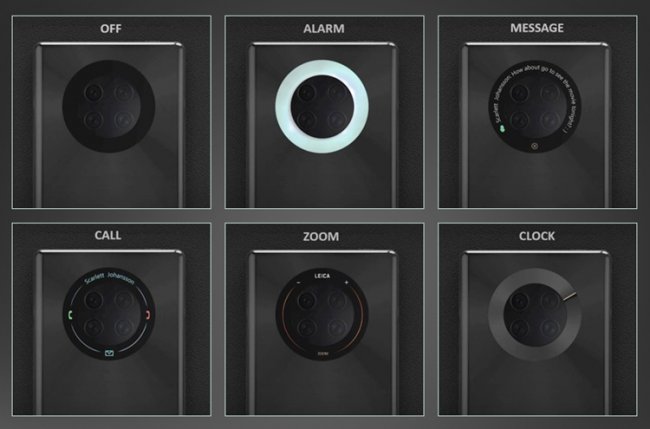 Как можно видеть на иллюстрациях, дополнительный тыльный дисплей будет опоясывать многокомпонентную камеру, выполненную в виде блока круглой формы. Говорится о поддержке сенсорного управления.