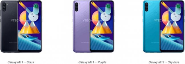 Galaxу M31 принесла в серию M перфорированный экран, и Galaxy M11 последует по тому же пути, судя по рендерам. Аппарат предложит 6,4-дюймовый сенсорный ЖК-экран с разрешением 720 ? 1560 и перфорацией под 8-Мп камеру для автопортретов. В основе устройства лежит 8-ядерная однокристальная система Snapdragon 450 с частотой ЦП до 1,8 ГГц, дополняемая 3 или 4 Гбайт ОЗУ, а также 32- или 64-Гбайт накопителем.