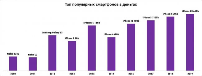 Самыми популярными смартфонами в денежном выражении в течение последних лет являются аппараты Apple iPhone. В штучном исчислении предпочтения россиян меняются от года к году.
