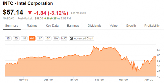 По мнению экспертов Wedbush, стоимость акций Intel может составить $52,50 за штуку, но во втором полугодии спрос на компоненты, необходимые для организации удалённой работы и образования перестанет расти. Нельзя исключать, как поясняют авторы аналитической записки, что это вынудит Intel отказаться от оглашения прогнозов на весь год в пользу формирования только поквартальных прогнозов. Очередную квартальную отчётность компания должна опубликовать 23 апреля.