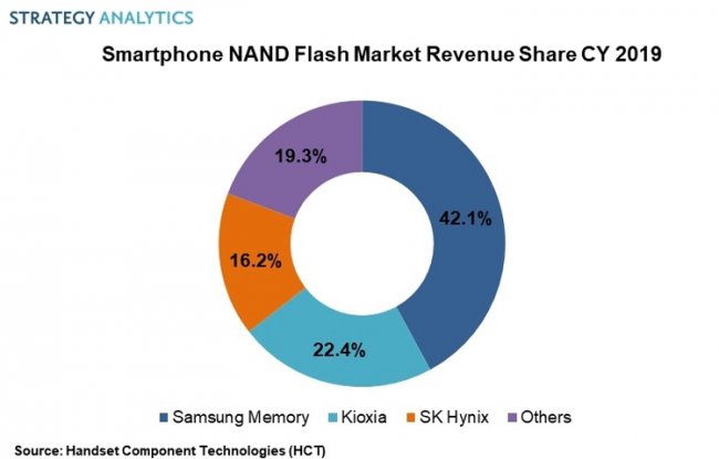 Компания Strategy Analytics подвела итоги исследования мирового рынка чипов памяти для смартфонов в 2019 году: объём отрасли составил приблизительно $39,3 млрд. Представленные данные учитывают отгрузки флеш-накопителей NAND, а также модулей оперативной памяти DRAM.