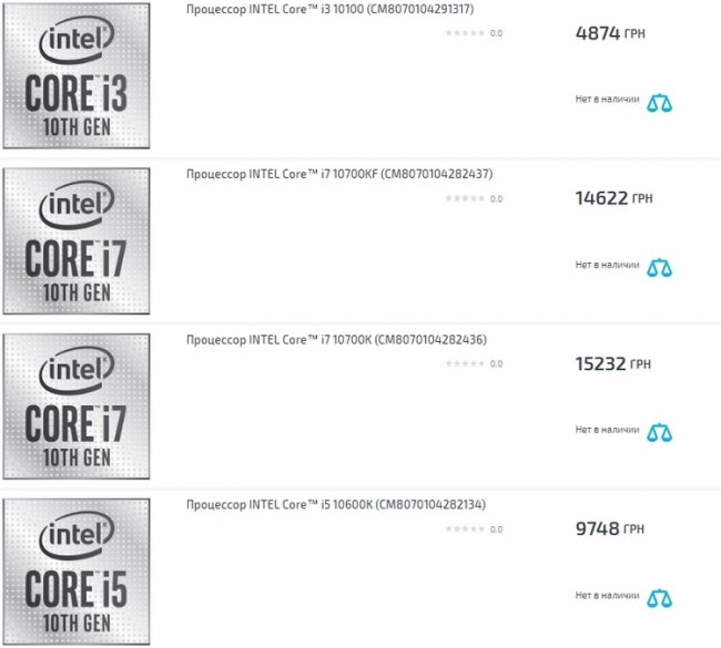 Компания Intel должна представить свои долгожданные настольные процессоры Comet Lake-S только в конце этого месяца, что не мешает некоторым магазинам добавлять их в свой ассортимент уже сейчас. Утром мы сообщали о начале предзаказов в Канаде, а теперь новые чипы Intel появились и в ассортименте украинского магазина Brain.