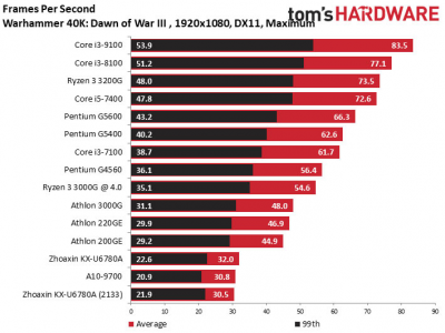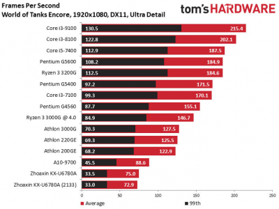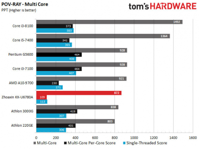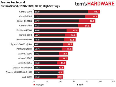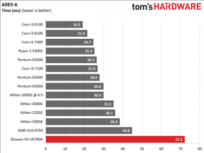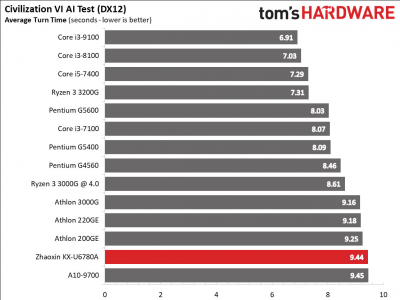 Тем не менее, синтетические тесты редко показывают реальную производительность, и 8-ядерный Zhoaxin KX-U6780A уступает даже самым слабым двухъядерным процессорам Intel и AMD в играх вроде Far Cry 5, Civilization VI, Dawn of War III и даже в World of Tanks.