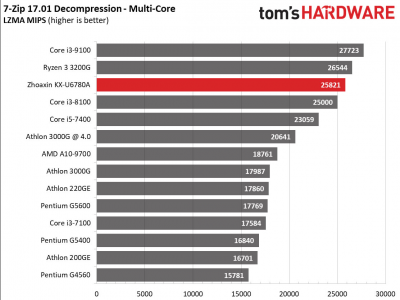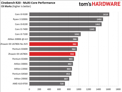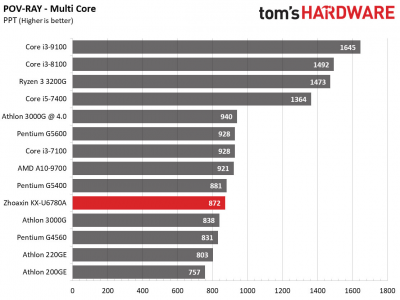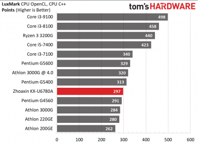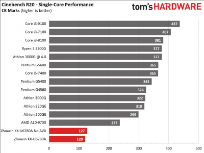До сих пор можно было судить о возможностях решения только по утечкам и официальным маркетинговым материалам. Например, Zhaoxin утверждала, что чип должен работать на уровне с Intel Core i5-7400 (Kaby Lake) 2017 года. Когда чип KaiXian появился в базе данных эталонных тестов PassMark, результат, казалось, в целом подтвердил это, но только в многопоточном режиме — показатели однопоточной работы были значительно ниже.