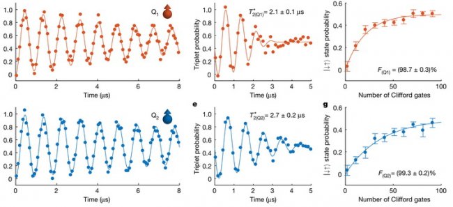 Более того, исследователи реализовали универсальную квантовую логику на основе двухкубитного процессора и продемонстрировали возможность её работы при температуре 1,1 кельвин с уровнем надёжности однокубитной операции в 99,3 % и временем когеренции 2 микросекунды. Ранее подобное было возможно только при температуре 40 милликельвинов.