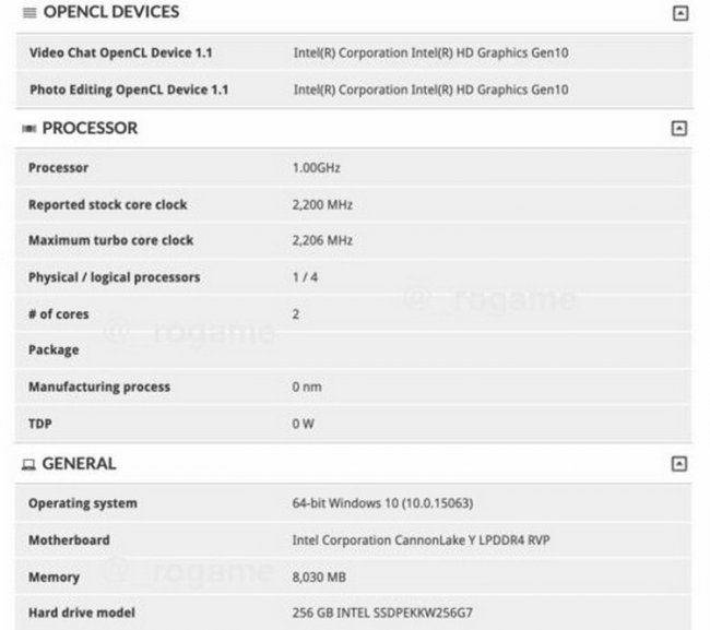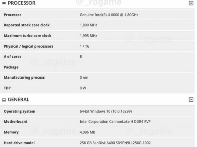 Известный источник утечек с псевдонимом _rogame обнаружил в базе данных 3DMark записи о тестировании двух неведомых процессоров семейства Cannon Lake-H. По принадлежности к данному семейству можно сделать вывод, что они должны были стать первыми 10-нм чипами Intel для производительных мобильных компьютеров.