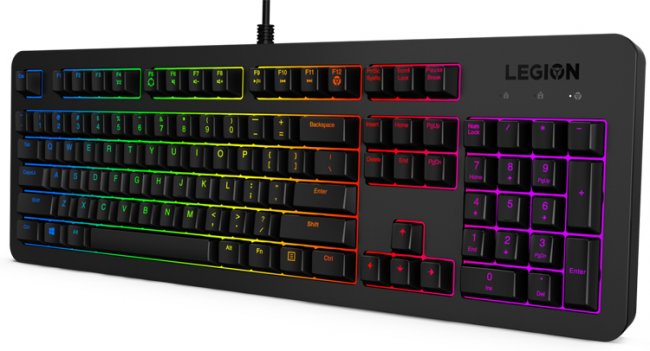 Наконец, клавиатура Legion K300 получила полноразмерную конструкцию. Заявленный срок службы кнопок достигает 20 млн нажатий. Реализована пятизонная многоцветная подсветка. Кроме того, упомянута защита от брызг.