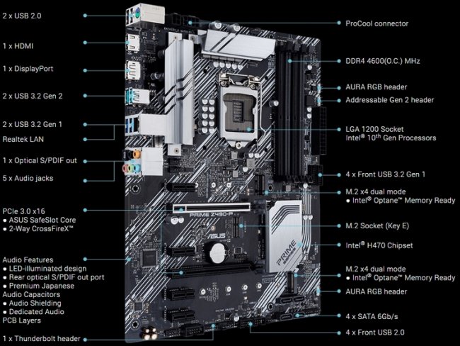 По названиям понятно, что обе грядущие новинки построены на флагманской системной логике Intel Z490. Однако в текстовых описаниях фигурирует стоящий на ступень ниже чипсет Intel H470. Остальные характеристики, кажется, действительно принадлежат Prime Z490-P. Из интересных особенностей отметим наличие штырькового разъёма для подключения порта Thunderbolt на фронтальной панели, а также поддержку памяти DDR4-4600 (в разгоне).