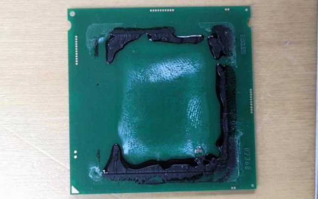 Примечательно, что под крышкой таких процессоров нанесён не только герметик по периметру для крепления к печатной плате подложки, но и термоинтерфейс, а вот самого кристалла нет даже в зачатке — подложка в этом смысле выглядит абсолютной «пустышкой».