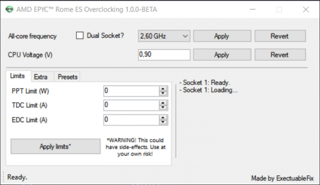Управлять параметром EDC можно с помощью утилиты RomeOverclock, созданной энтузиастами. Также ПО позволяет выставить процентное значение потребляемой мощности, и желаемую тактовую частоту. Правда, далеко не факт, что она будет совпадать с реальной частотой чипа. На самом деле, энтузиасты на данный момент до конца не знают, как всё это работает. Тем не менее, инженерные образцы процессоров EPYC Rome можно разогнать до 3,8 ГГц.