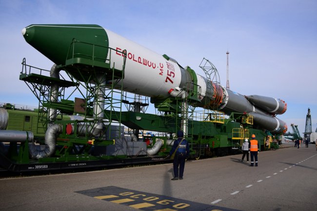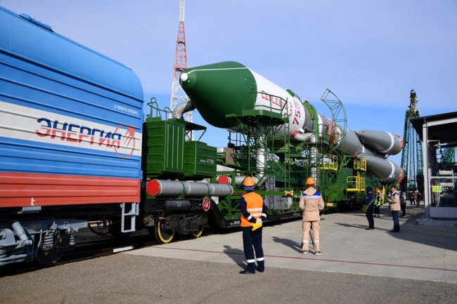 Государственная корпорация Роскосмос сообщает о том, что сегодня, 22 апреля 2020 года, ракета-носитель «Союз-2.1а» с грузовым кораблём «Прогресс МС-14» была вывезена из монтажно-испытательного корпуса и установлена на стартовом комплексе площадки № 31 космодрома Байконур.