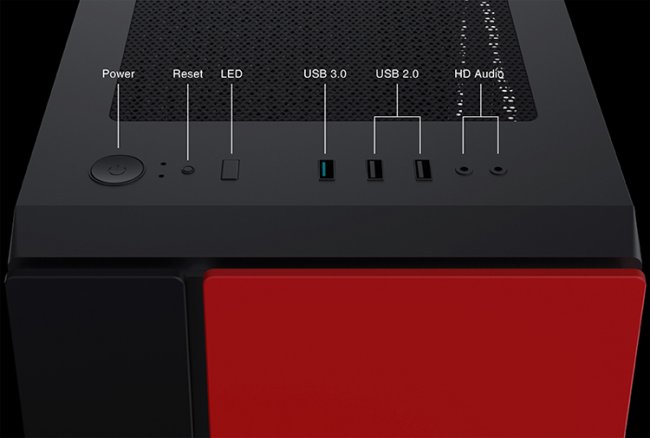 Корпус Xigmatek OMG имеет размеры 366 ? 210 ? 395 мм. На верхнюю панель выведены гнёзда для наушников и микрофона, два порта USB 2.0 и один порт USB 3.0.