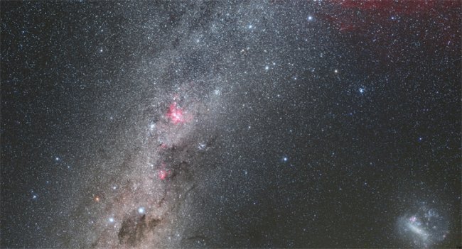Европейская Южная Обсерватория (ESO, European Southern Observatory) представила великолепный снимок нашей галактики Млечный путь. Информация сайта - «scanpin.ru» Изображение получено в глубине чилийской пустыни Атакама, неподалёку от обсерватории ESO Параналь. На ночном небе в этом уединённом уголке чилийской пустыни Атакама видны мельчайшие детали космоса. На представленном изображении, в частности, запечатлена полоса Млечного пути. На фото видны бесчисленные звёзды, тёмные волокна пыли и светящиеся облака космического газа. Нужно отметить, что на фотографии зафиксированы области звёздообразования. Высокоэнергетическое излучение новорождённых светил ионизует водород в газовых облаках и заставляет их светиться красноватым светом. Добавим, что на представленном снимке Млечный путь буквально раскинулся над Очень большим телескопом (VLT) в обсерватории ESO. Эта система состоит из четырёх основных телескопов и четырёх малых подвижных вспомогательных телескопов. Устройства способны регистрировать объекты в четыре миллиарда раз слабее тех, что видны простым глазом.