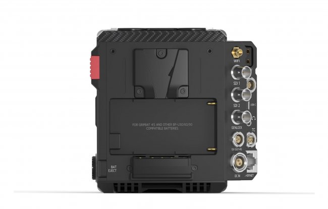 Корпус выполнен из углеродного волокна на алюминиевой раме для снижения массы и сохранения прочности. Он имеет скромные размеры 10,5 ? 12,1 ? 11,9 см и небольшой вес в 1,2 кг. Камера может получать питание от внешнего источника или через батарейный блок, который совместим с аккумуляторами V-mount или Sony BP-U.