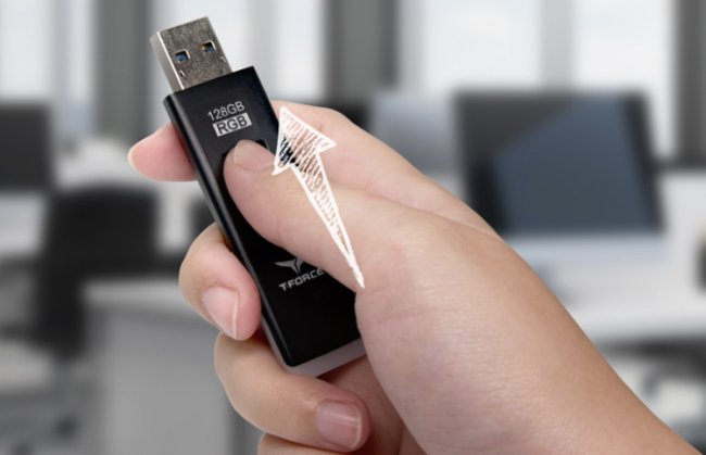 T-Force Spark RGB — это флеш-брелок, оборудованный выдвижным коннектором USB. Благодаря такой конструкции устройству не требуется защитный колпачок.