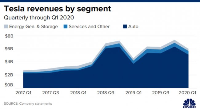 Объясняя слабые продажи своей продукции, связанной с солнечной энергией, в течение отчётного квартала, Илон Маск (Elon Musk) отметил: «COVID-19, по сути, заставил нас остановить деятельность». Tesla сообщила о том, что доходы от подразделения производства и хранения энергии за квартал составили $324 млн.
