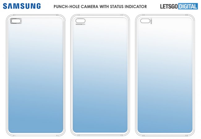 Южнокорейский гигант предлагает задействовать область около экранного отверстия для отображения различных графических индикаторов. Это может быть, скажем, полоса статуса, информирующая о процессе загрузки файлов из Интернета, или некая пиктограмма, указывающая на режим работы камеры.