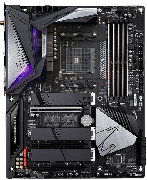Материнская плата B550 Aorus Master станет самой продвинутой моделью на B550 в ассортименте Gigabyte. Интересной особенностью этой платы является наличие трёх слотов M.2 PCIe для твердотельных накопителей. Также здесь имеется три PCIe x16, из которых два поддерживают PCIe 4.0. Отметим также наличие мощной подсистемы питания, модуля Wi-Fi 6 и 2,5-гигабитного сетевого интерфейса.