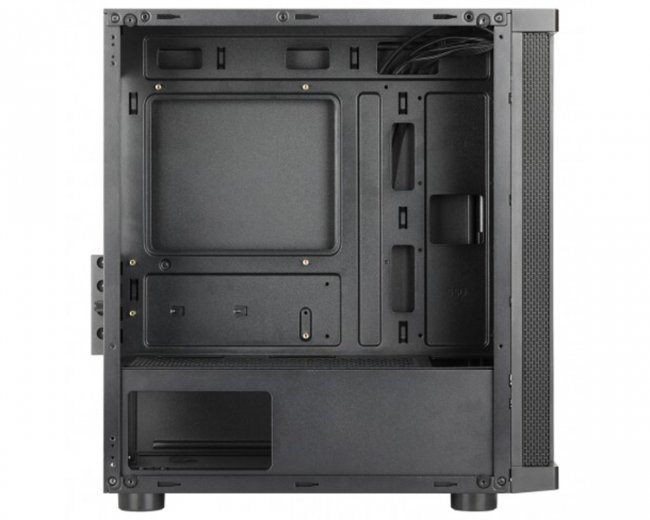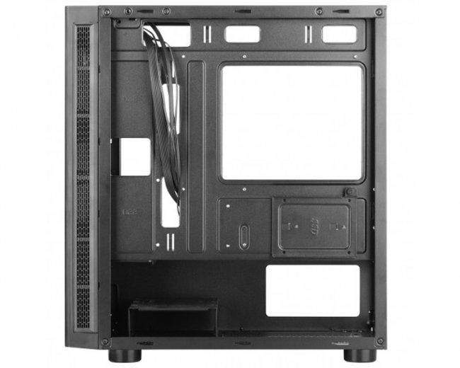 Корпус предназначен для создания компактной настольной системы игрового уровня. Изделие полностью выполнено в чёрном цвете. Фронтальная панель имеет асимметричный дизайн, а боковая стенка изготовлена из закалённого стекла, через которое можно любоваться внутренней компоновкой ПК.