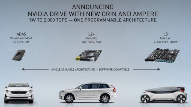 Компоненты NVIDIA предыдущего поколения уже используются в системах активной помощи водителю серийных автомобилей Volvo, но список партнёров на этом направлении неуклонно растёт, а потому к 2022 году использовать процессоры Orin и графические процессоры Ampere смогут десятки производителей транспортных средств самого разного назначения. Роботизированные такси, по убеждению представителей NVIDIA, появятся на дорогах раньше, чем клиентские автомобили с высшей степенью автоматизации, поскольку первые обычно будут курсировать по маршрутам в пределах ограниченной территории, а условия эксплуатации последних будут более сложными и разнообразными.