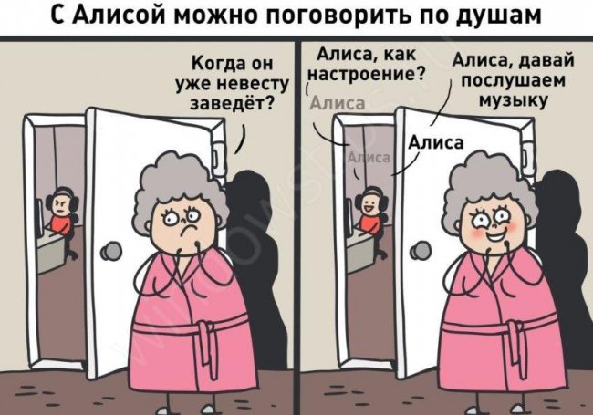 Функция «Алиса» создана в компании Яндекс. В ее функции входит распознавание речи пользователя, ответы и даже шутки. Многие используют голосовую помощнику в качестве собеседницы. Функция работает на смартфонах и ПК, что сделало ее популярной у более чем 30 миллионов людей. В качестве прообраза выбрана молодая девушка, готовая оказать помощь. В динамиках звучит голос Шитовой, известный по озвучке Скарлет Йоханссон. Многие склоняются ко мнению, что выбрать лучше вариант вряд ли бы удалось.