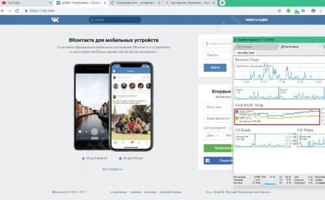 - На Гугл Хром ОЗУ занята на 90%. При попытке открыть еще несколько сайтов сессия оборвалась. После закрытия оперативная память продолжала быть загруженной, ведь проводник работал в фоновом режиме. Для разгрузки ноутбука пришлось закрывать каждый процесс вручную.