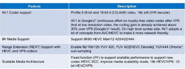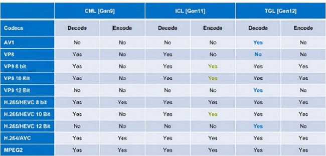 Отдельно стоит обратить внимание на возможности аппаратного видеокодека новой графики. Согласно представленным данным, графика Intel 12-го поколения предложит поддержку декодирования современных стандартов AV1, 12-битных VP9 и H.265/HEVC. В итоге новая «встройка» Intel сможет обеспечить воспроизведение видео в разрешении до 8K при 60 FPS.