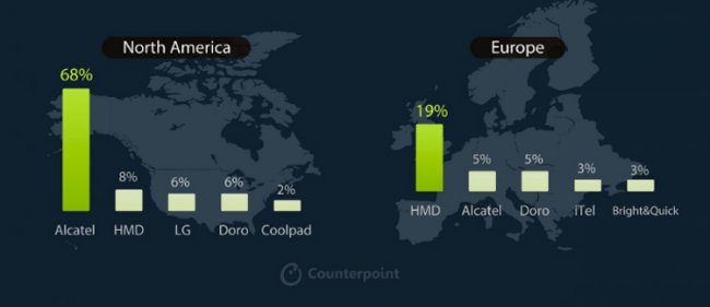 На втором месте находится HMD Global, выпускающая аппараты под маркой Nokia: эта компания удерживает примерно 15 % глобального рынка. В то же время HMD Global лидирует в Европе с долей в 19 %.