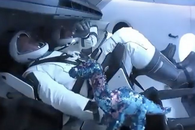 В третьем кресле пилотируемого Crew Dragon ещё в ходе подготовки к запуску была обнаружена игрушка, которую геофизик Мика Маккиннон (Mika McKinnon) сразу определил, как плюшевого динозавра TY Flippables Tremor Dinosaur.