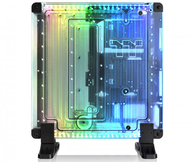 Новинка рассчитана прежде всего на энтузиастов. Корпус изначально спроектирован с прицелом на применение жидкостного охлаждения. Его задняя стенка представляет собой резервуар для охлаждающей жидкости, он оборудован помпой D5, а также в нём возможен монтаж радиаторов типоразмера до 420 мм.