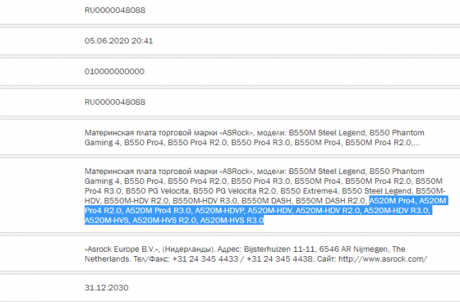 К сентябрю AMD рассчитывает представить набор логики A520, который был разработан по её заказу компанией ASMedia. Он должен стать более доступной альтернативой B550, позволяющей обеспечить поддержку процессоров Ryzen с архитектурой Zen 3. Ассортимент материнских плат ASRock на базе A520 уже упоминается в таможенной базе данных ЕЭК.