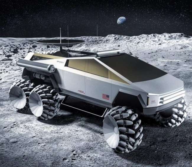 Автором рендеров с изображением лунохода Tesla стал пользователь социальной сети Instagram с ником Charlie Automotive. Вполне логично, что основой для проекта стал пикап Tesla Cybertruck, поскольку его необычный внешний вид отлично подходит луноходу.
