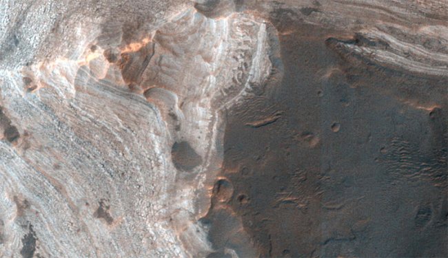 Национальное управление США по воздухоплаванию и исследованию космического пространства (NASA) представило великолепный снимок марсианской поверхности, полученный с борта орбитальной станции Mars Reconnaissance Orbiter (MRO).