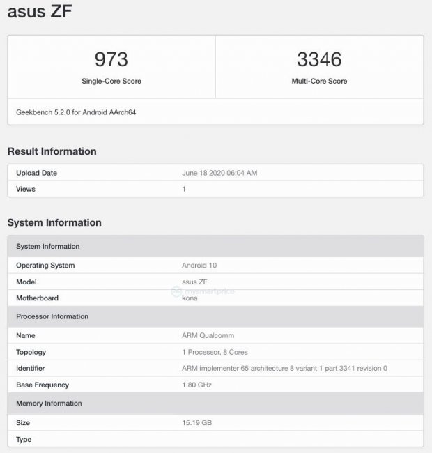 Сегодня в Сеть также попала информация о другом будущем смартфоне от компании ASUS. В базе данных Geekbench появилось устройство с кодовым названием «asus ZF». Как указывает источник, речь идёт о смартфоне ASUS Zenfone 7, анонс которого ожидается в следующем месяце.