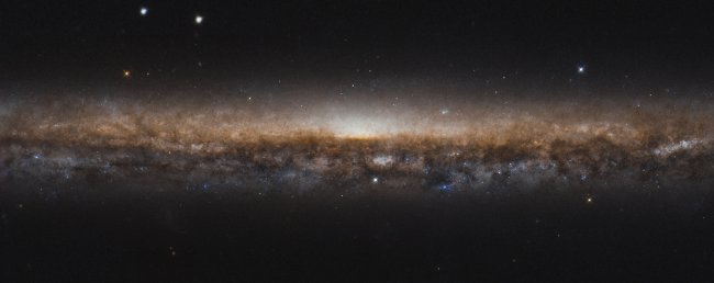На фотографии галактика выглядит как толстая линия, состоящая из звёзд и тёмной пыли. Ниже можно увидеть изображение в полном разрешении (нажмите для увеличения).