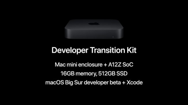Для разработчиков приложений под новую платформу Apple подготовила программу Universal App Quick Start Programдля «быстрого перехода», а также специальный Developer Transition Kit — аппаратный комплект разработки. В его основу взят Mac mini, в который был внесён ряд изменений. В частности, здесь используется процессор Apple A12Z Bionic, 16 Гбайт оперативной памяти, а также SSD-накопитель объёмом 512 Гбайт. Работает система под управлением бета-версии macOS Big Sur. Кроме того, в комплект включена программная среда разработки Xcode 12.