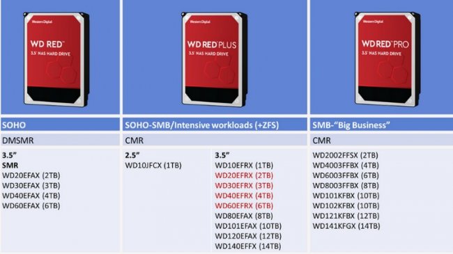 Таким образом, в серии WD Red теперь остались лишь накопители, использующие технологию SMR (DMSMR по классификации самой Western Digital). Данная серия включает модели на 2, 3, 4 и 6 Тбайт и предназначается для NAS-систем начального уровня. Что же касается более продвинутых накопителей Red Pro, построенных на CMR, то эта серия изменений не претерпит.
