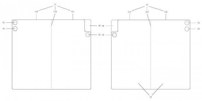 Как можно видеть на иллюстрациях, речь идёт об устройстве в форм-факторе книжки. Гаджет получит экран, сгибающийся в центральной части.